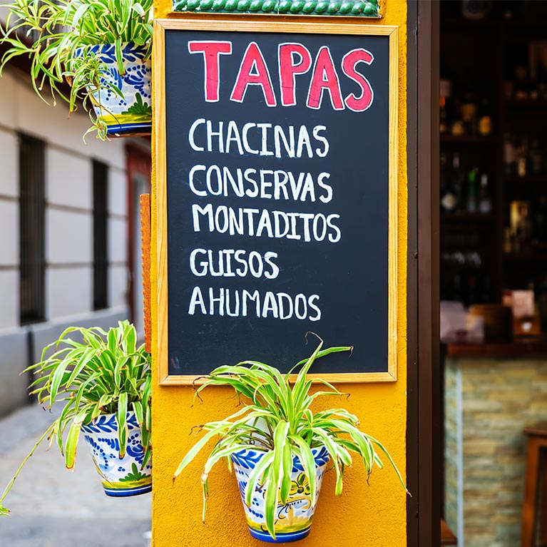 Für die Andalusier dagegen ist klar: Die Tapas haben ihren Ursprung im sonnigen Süden des Landes. Da man in Andalusien schon immer gern im Freien gegessen und dazu ein Gläschen Sherry getrunken hat, musste man das edle Getränk irgendwie vor Insekten und Schmutz schützen. Also bedeckte man das Glas mit einem kleinen Tellerchen, auf den man ein paar Oliven, Mandeln, etwas Schinken, Wurst oder Käse legte, gern auch noch mit einem guten Schuss Olivenöl als Grundlage für den Alkohol. Sevilla gilt deshalb landläufig als Heimat der Tapas – auch wenn heute die Tapas-Kultur wohl in Madrid am intensivsten zelebriert wird.