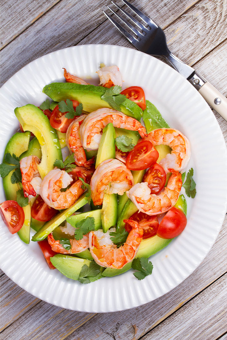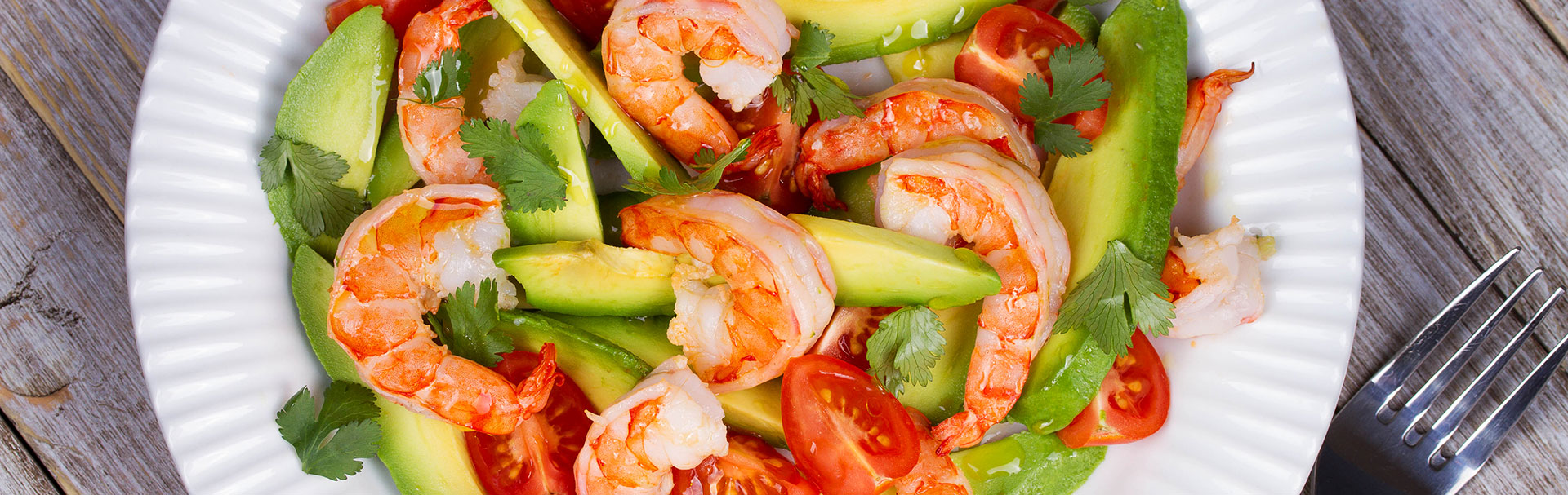Garnelen und Avocado sind eine fast schon klassische Kombination - nicht nur bei Krabbencocktail in der Avocadohälfte. Für unseren köstlichen Salat nimmst du am besten wirklich reife und aromatische Avocados. So wie die frischen aguacates aus Spanien, die zu 97 Prozent aus Andalusien stammen und dort reif geerntet werden. Für den Garnelen-Avodado-Salat sollten sie allerdings nicht zu weich sein, damit sie beim Schneiden nicht zerfallen. Wichtig ist, dass du geschälte Früchte schnell verarbeitest und auf den Tisch bringst, damit das Fruchtfleisch nicht braun wird. Du kannst die einzelnen Stückchen aber auch mit Essig oder Zitronensaft einreiben. So behalten sie ihre Farbe etwas länger. Und falls Koriander nicht so dein Ding ist, kannst du natürlich gern auch mit Petersilie garnieren.
