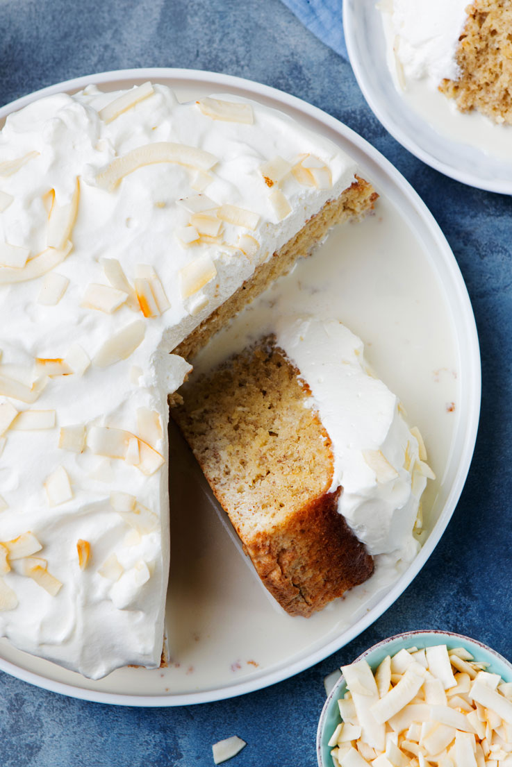 Dieser köstliche Kuchen stammt ursprünglich aus Lateinamerika, wahrscheinlich aus Mexiko oder Nicaragua. Doch die Spanier haben sich das beliebte Dessert längst einverleibt – im wahrsten Sinne des Wortes. Wie der Name schon sagt, kombiniert das Original drei in Spanien sehr beliebte Variationen der Milch (leche): Sahne, Kondensmilch und gesüßte Kondensmilch. Durch Kokosmilch kann man noch einen Hauch Karibik einfließen lassen – passend zur Heimat des Kuchens. Garnieren kannst du deinen pastel de tres leches nach Belieben mit Beeren oder Kirschen, Schokostreuseln oder Kokosflocken – oder auch mit einer ordentlichen Portion Zimtpulver. Auf spanischen Speisekarten findest du dieses Dessert übrigens als pastel de tres leches, torta de tres leches oder auch tarta de tres leches.