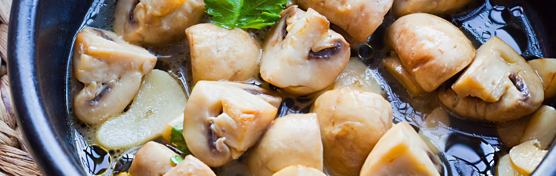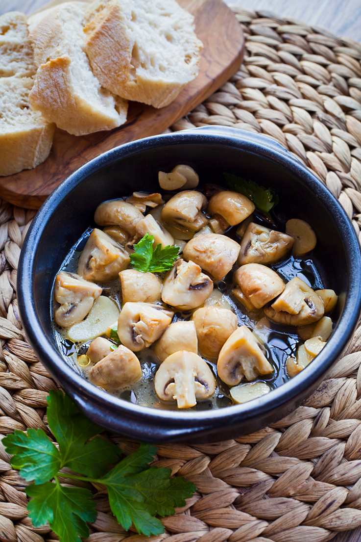Super einfach, super lecker: Ursprünglich stammt diese Vorspeise wohl aus der Region Kastilien-La Mancha in Zentralspanien. Dort wächst nämlich der beste spanische Knoblauch. Auch Champignons werden dort gezüchtet – zum Teil in uralten Höhlen. Heute gibt es champiñones al ajillo in jeder Tapas-Bar, und auch am heimischen Herd sind sie in wenigen Minuten zubereitet. Je nach Gusto kannst du hierfür weiße oder braune Champignons verwenden. Wenn du deine Gäste mit echt spanischem Flair beeindrucken willst, bringst du die Knofel-Pilze natürlich in den typischen roten Tonschälchen (cazuelitas) auf den Tisch.
