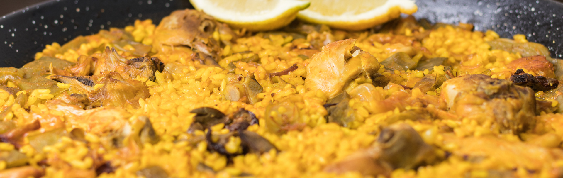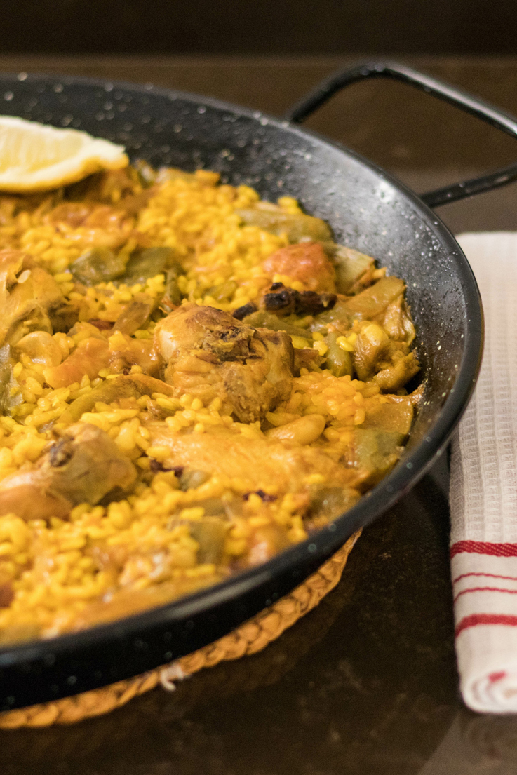 Dieses Rezept erinnert an die authentische Paella valenciana, wie sie schon vor Jahrhunderten von den Bauern auf den Feldern rund um Valencia zubereitet wurde. Da die Landarbeiter nicht viel mitnehmen konnten, machten sie einfach am Feldrand ein Feuer und warfen alles in die Pfanne, was gerade reif war. Das waren sehr häufig Tomaten und Bohnen, aber auch Paprika, Zucchini oder Artischocken. Dazu kamen Reis und Olivenöl. Wenn die Umstände es gut meinten, konnten die Bauern ein Kaninchen erlegen oder sie fanden auf dem Acker ein paar Schnecken. Zu ganz besonderen Gelegenheiten wurde auch noch ein Huhn geschlachtet. Erst später entwickelte sich die Paella zum berühmtesten Gericht der spanischen Küche. Mit edlen Zutaten wie Garnelen oder Kaisergranat ist sie heute alles andere als ein Arme-Leute-Essen.