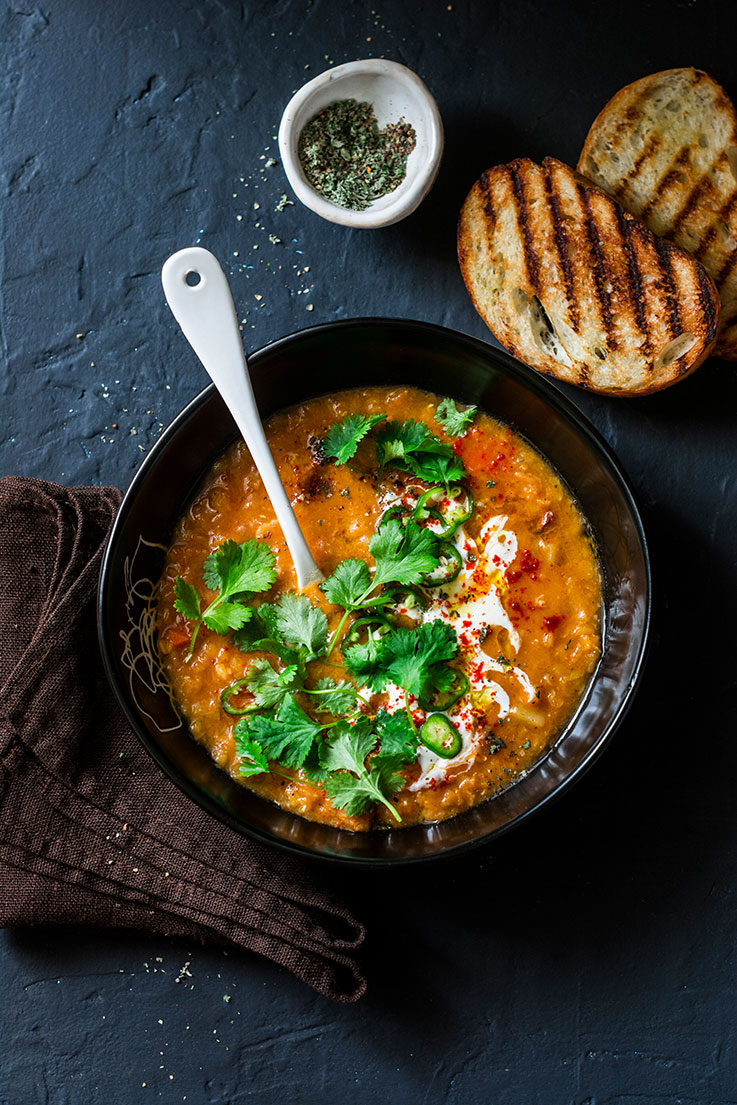 Manche wundern sich, wenn bei spanischen Rezepten ein Linseneintopf auftaucht. Und klar: Das ist keine sommerliche Mittelmeerküche. Aber Spanien ist eben nicht nur Mittelmeer. Im Landesinneren haben deftige Eintöpfe eine lange Tradition – vor allem in den Bergregionen des Nordens. Traditionell lieben die Spanier ihre Suppen und Eintöpfe mit viel Fleisch, Wurst und Speck. Aber da der Trend zur gesunden, fleischlosen Ernährung auch auf der Iberischen Halbinsel angekommen ist, findet man immer häufiger auch vegetarische oder vegane Varianten. Probier’s mal aus und du wirst sehen: Diesem leckeren Eintopf fehlt wirklich nichts. Indem du die Wassermenge variierst, kannst du entscheiden, ob du lieber eine Suppe oder einen richtig dicken Eintopf auf den Tisch bringen willst.